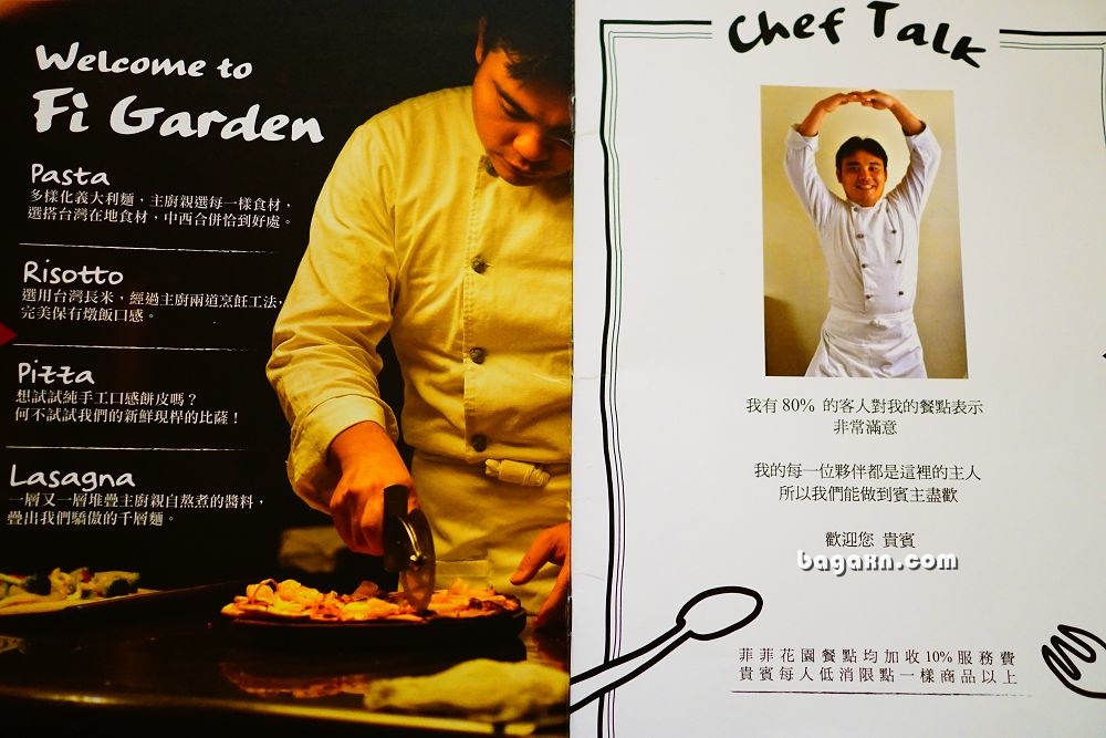 【菲菲花園】是台中西屯在地14年老字號義式餐廳,選用新鮮健康食材搭配主廚巧思料理技巧,每道都是藝術品般的獨家美味。燈光美氣氛佳,出餐速度適宜,親切服務品質優,情侶約會、家庭聚會、求婚或是團體包場都適合! 這天和許久未見的兄弟相約來此一聚,嘗美食敘家常。