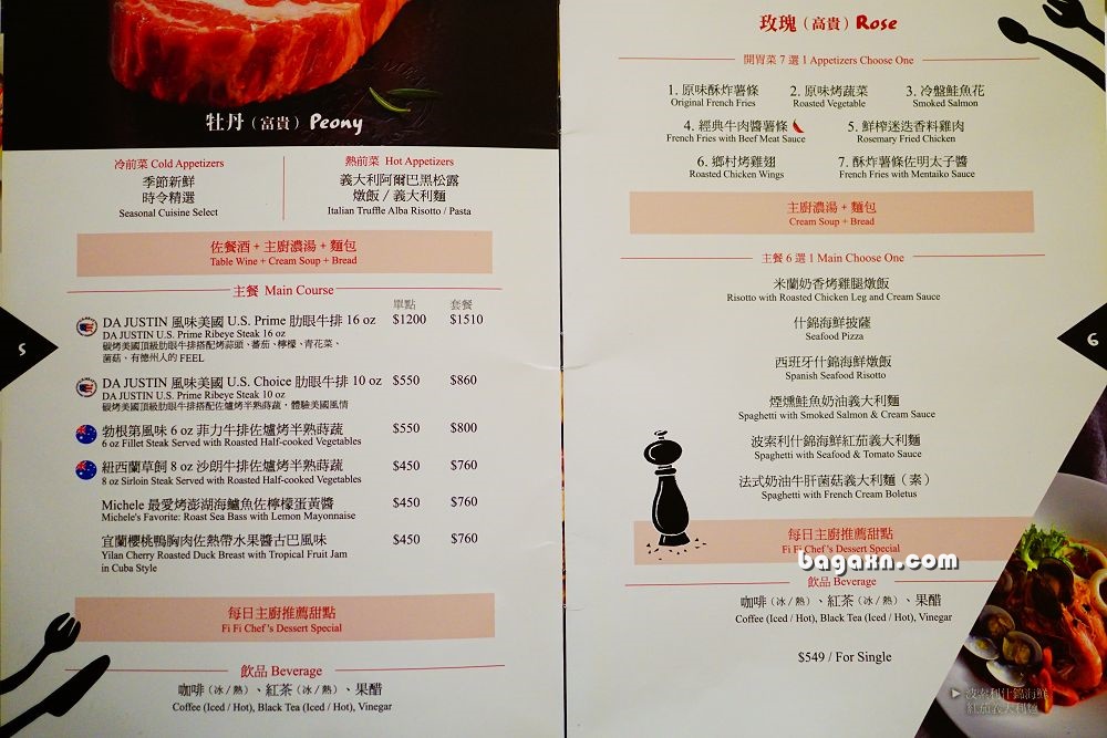 我們這次三個人用餐,共點了「牡丹套餐」、「玫瑰套餐」及任選主餐加價升級套餐各一份。