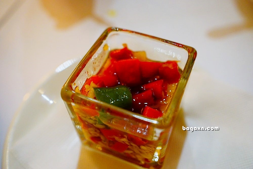 隨麵包附上了特製辣椒醬,這是由韓國青龍、紅色辣椒、蒜頭及橄欖油等材料製成,吃起來香氣十足卻又不會過辣,很適合抹在青醬焗麵包上,可以增添不少香氣。