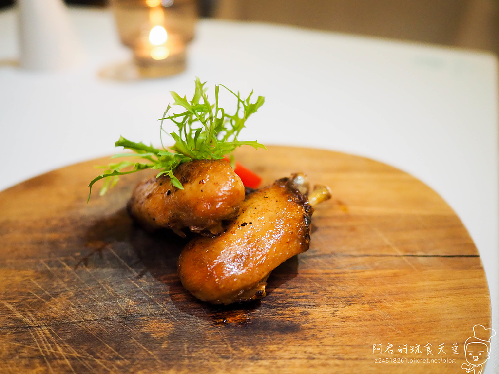 前菜是鄉村烤雞翅,使用了蜂蜜、醬油以及印度香料事先醃過,外皮烤得恰到好處,一上桌便香氣四溢,還略帶了點焦香味,實在令人食指大動啊。