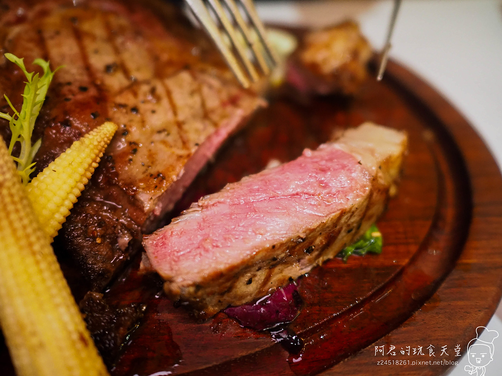 熟度是店內推薦的五分熟,在咀嚼之後可以感受到牛排的肉質真的很棒,除了充滿肉汁以外,牛肉本身的甜味,也是不用任何調味料就能輕易感受出來的,看這美的不像話的粉紅色就知道了。