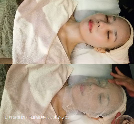 接著老師拿了含保加利亞玫瑰的泥面膜幫我敷臉,很特別的是她敷了一層後,再蓋了一層薄紗,然後在塗一層,好耗功夫喔!