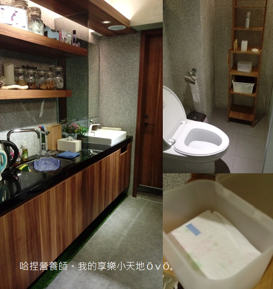 而吧檯的旁邊是廁所,在層櫃上有放衛生棉,可以供生理期的水水使用~