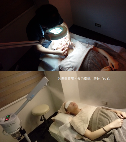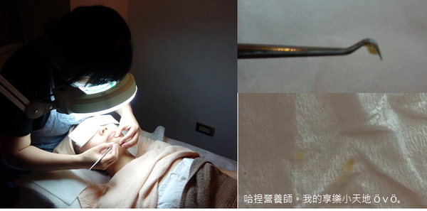 接下來是清粉刺,老師說我的粉刺表層的很多,平常應清潔乾淨、定期去角質及加強保濕,這都可以把淺層的粉刺代謝掉,