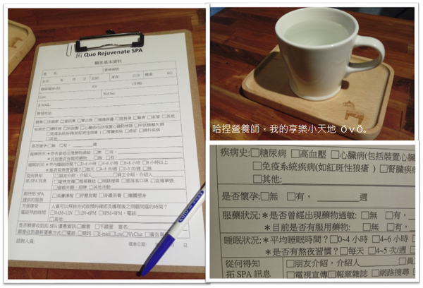 正當我到處拍照的時候,櫃台親切地遞了茶水,還有一份問卷要填寫,不外乎是一些基本資料,