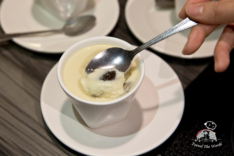 蒸蛋三人份,裡面有香菇、魚、蛤仔的配料。