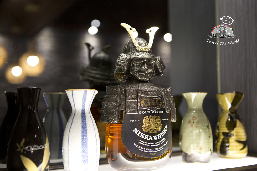 室外有小庭園,室內以黑色系日式和風裝潢設計。