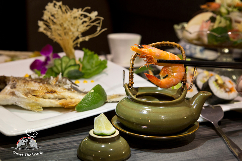 裡面蛤蜊,鮮蝦,菇類等食材加入昆布高湯,