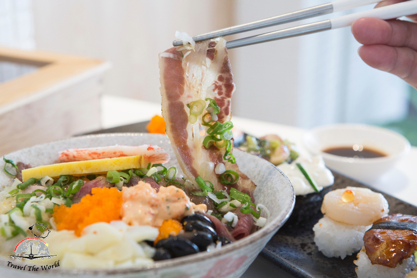 丼飯因為使用的是常溫飯,吃起來不會有過於冰涼的感覺。