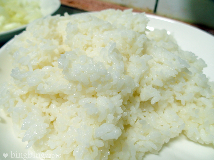 (水加一點點就好,不然飯會太濕,這樣炒起來飯就變得不好吃了)