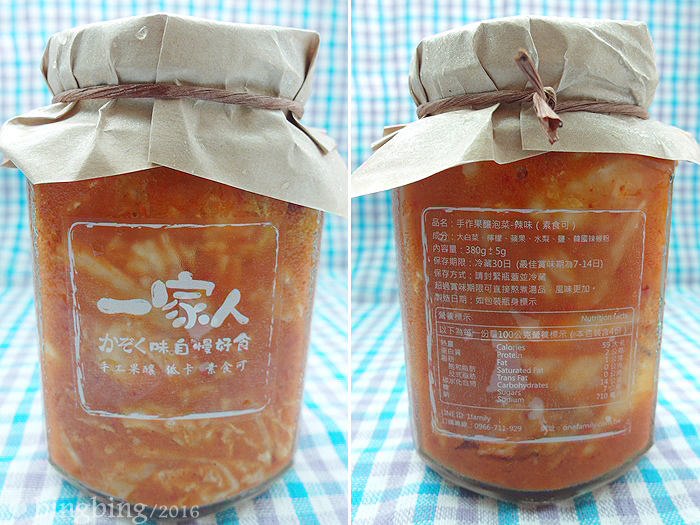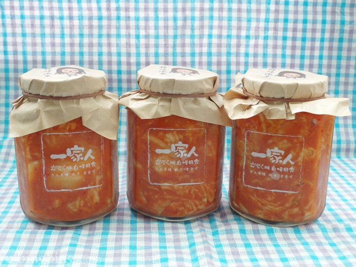 一家人的『手作果釀泡菜』分為辣味和薑黃口味兩種,素食者也可以食用喔!