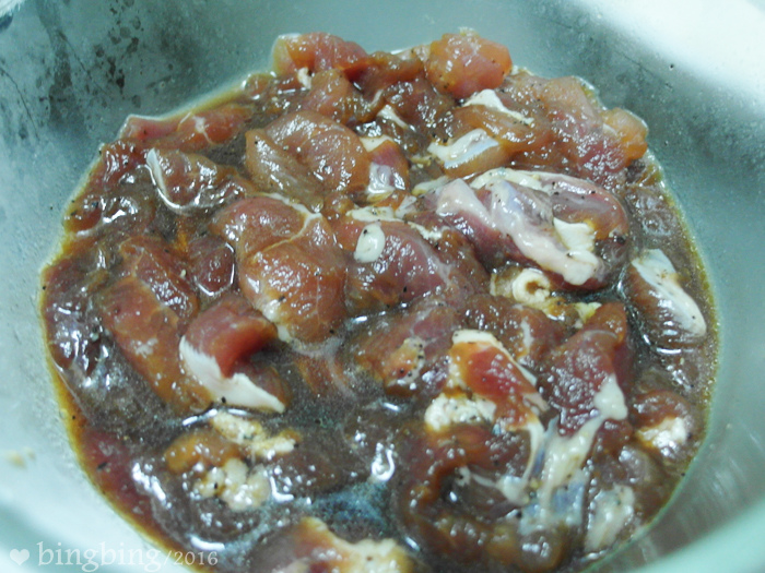 ◆ 肉絲 (先醃過,醃料:醬油15ml一匙、黑胡椒粉、香油)