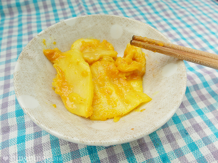 吃起來雖然不是那種會讓人上癮一口接著一口的泡菜,但吃起來辣中帶有果酸的滋味真的很特別