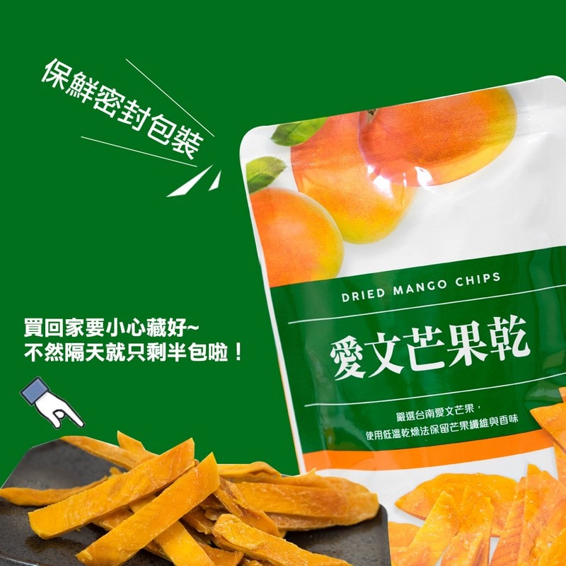 嚴選台南愛文芒果,使用低溫乾燥法保留芒果纖維與香味。