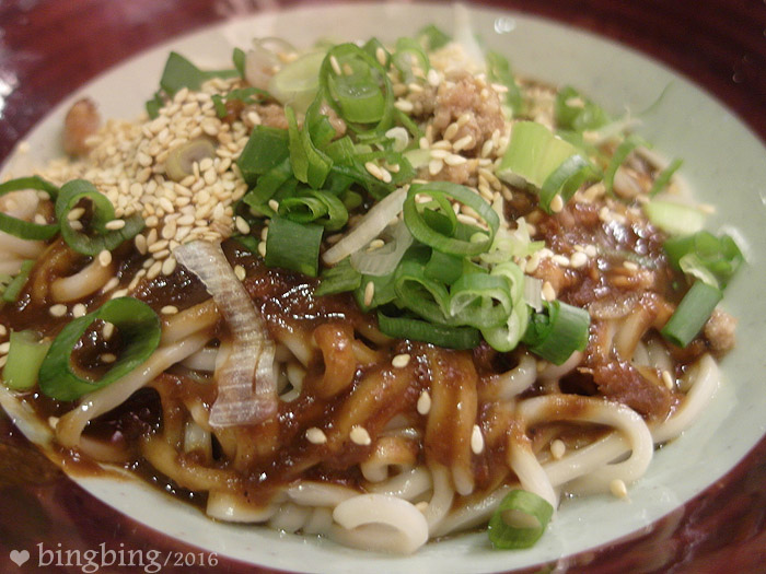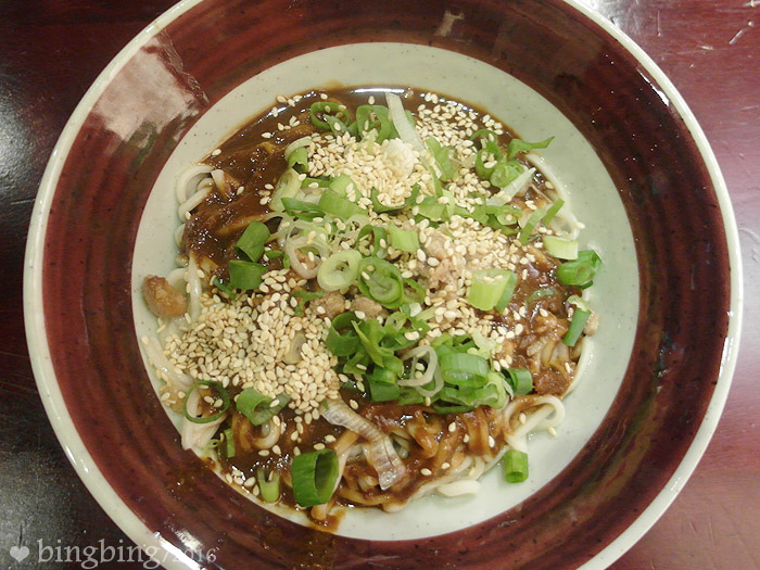 很特別的乾拌麵,上頭有老闆特製的醬料,在撒上滿滿的白芝麻和蔥花