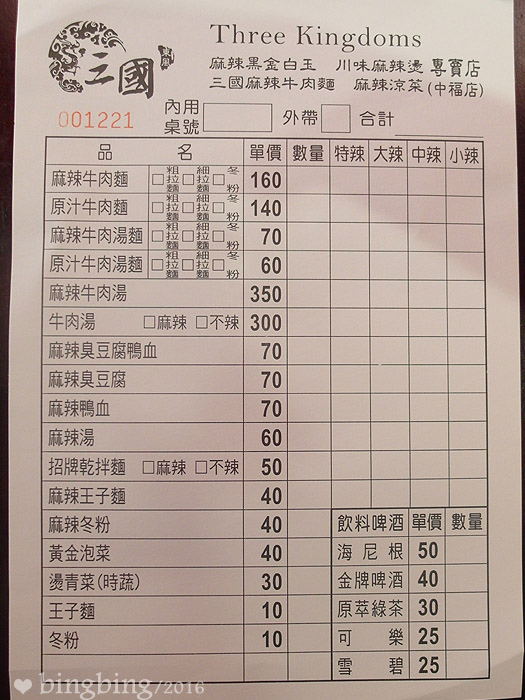 三國麻辣的麵類都有粗拉麵和細拉麵兩種麵條可以做選擇 (也可以選擇冬粉)