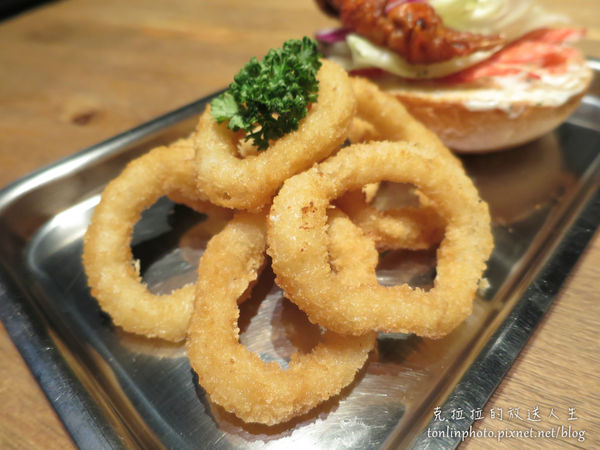 一旁搭配的炸花枝圈,鮮香Q彈,調味剛剛好,不需要額外沾醬就很好吃,是非常成功的炸花枝圈。