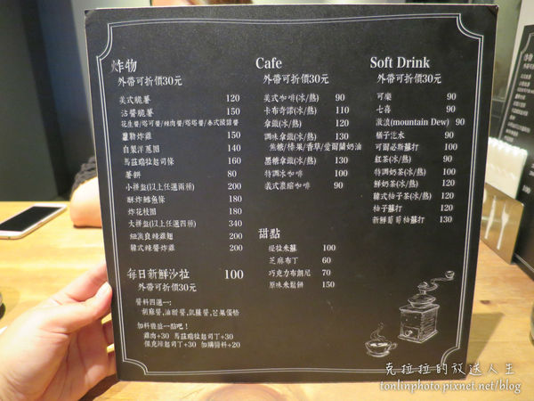 餐廳的名稱 Take Out 就是可以外帶的意思啦!(據說3公里內還可以外送,滿350元免外送費)