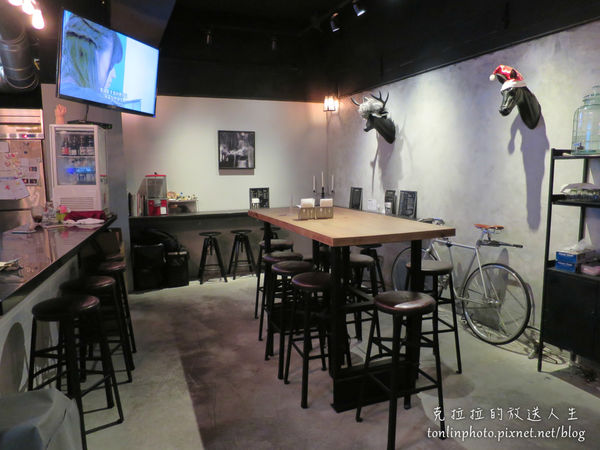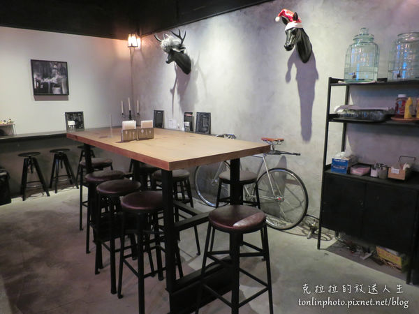 店內的感覺比較都會感,除了有各色有趣的裝飾物(老單車、牆上的鹿頭、角落的扭蛋機)之外,