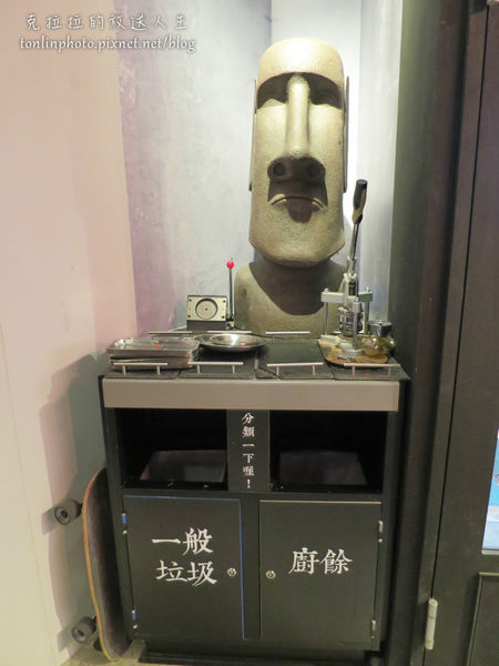 (覺得在門邊的角落擺上摩艾像當作回收台的指示這個點子真的是太棒了,絕對不會忘記的!)