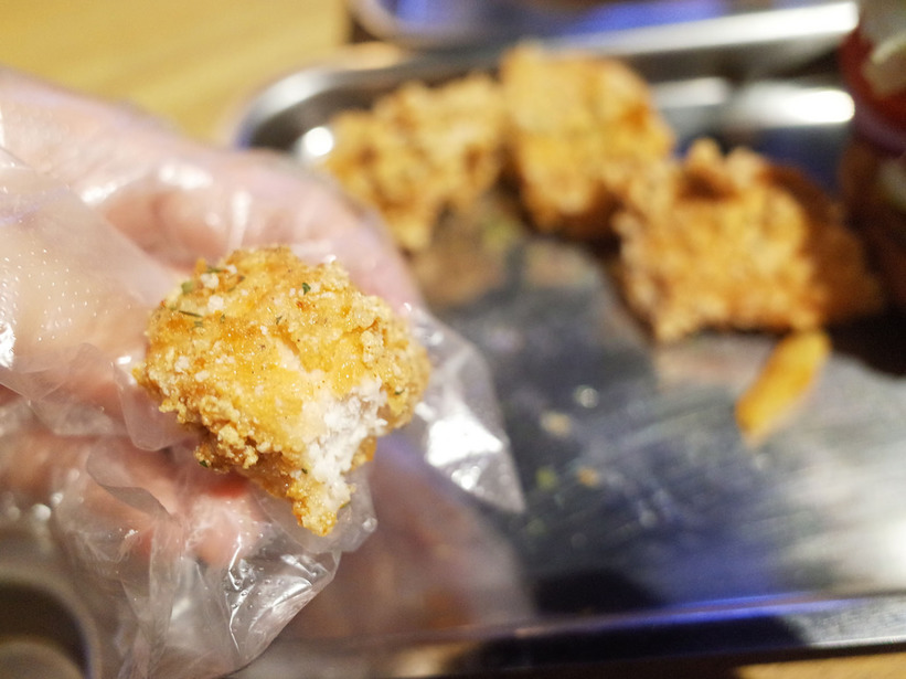 因為有醃過醬料再下去炸,吃起來稍微甜甜的,而且厚度切得很夠,咬起來十分飽口、滿足!!