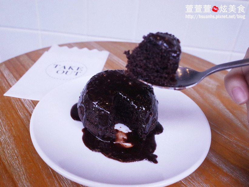 溫熱的布朗尼外頭淋了榛果巧克力醬,就像小瀑布般沿著蛋糕流下來,看起來超犯規