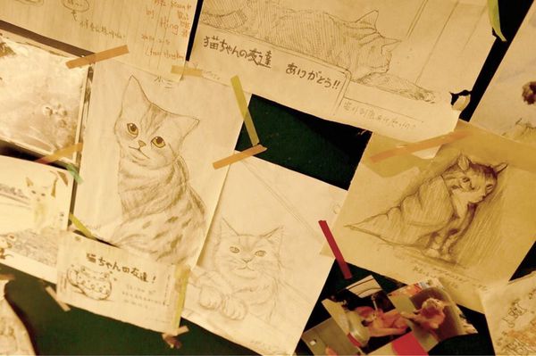 面還貼著好多手繪貓咪的紙張 (不知道是客人還是老闆畫的!?)