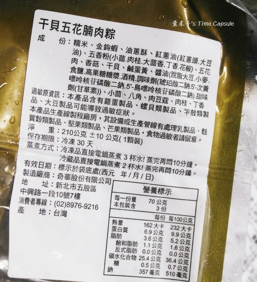 提醒大家粽子在冷粽狀態和冷藏狀態下加熱的時間不太一樣ㄛ!