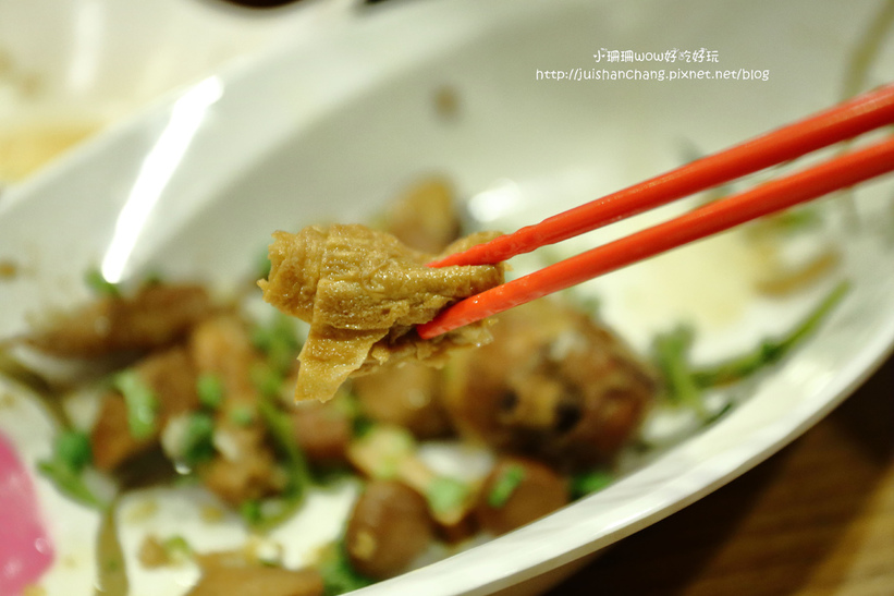 豆皮也值得推薦,原本看起來硬硬的不起眼,加熱滷得鹹香味恰到好處,整個吸飽了滷汁,吃來微鹹軟潤細緻,咬下去還有明顯的豆香味