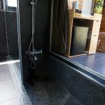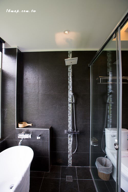 很特別的是四人房的衛浴採全玻璃,但卻只有外面可以拉門簾~