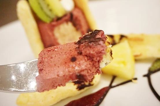 蛋糕主體是莓果慕斯,酸酸甜甜,超對女生的味蕾啊!
