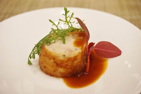 每次的開胃小點都不一樣,看主廚的心情囉!今天的是雞肉捲。