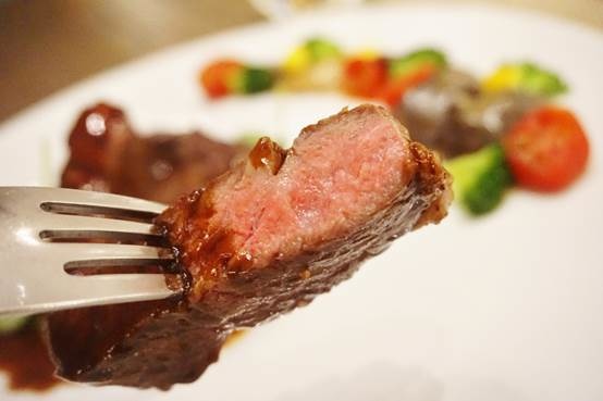 七分熟肉質玫瑰色鮮紅,切面很juicy,肉質相當鮮嫩。
