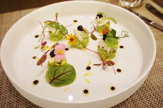 鱈場蟹沙拉搭配青豆慕斯