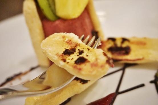 旁邊點綴的酸甜果醬,可以沾水果一起吃,很不錯。