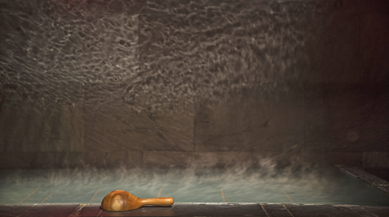 室內有溫泉水池、冷泉與熱泉,也有烤箱和蒸氣室可以使用。