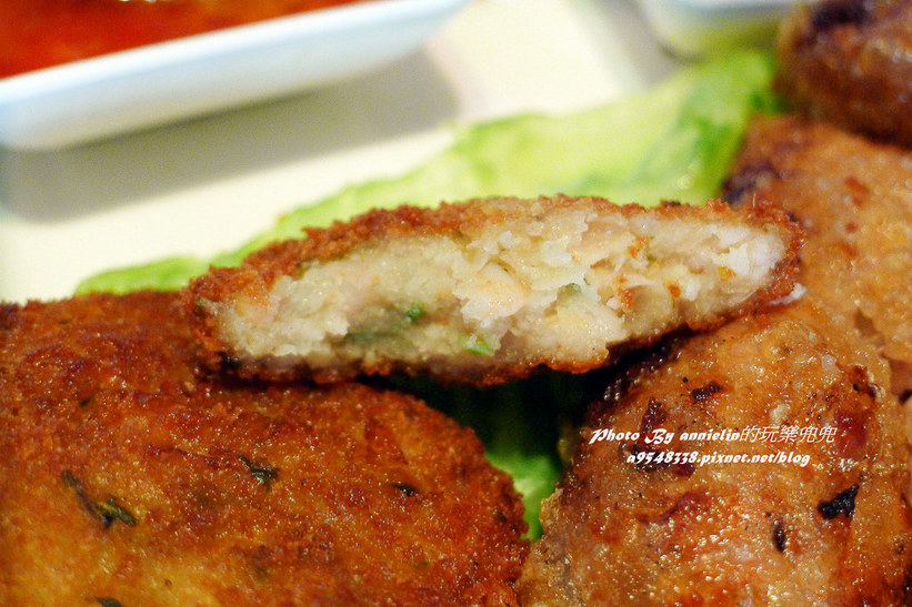 再來是金錢蝦餅,這個啊只要炸得酥就會很好吃,