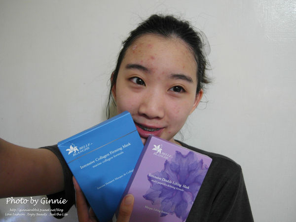 這次體驗的是 貝殼光面膜的極致光感水嫩面膜(藍盒)&極致光感抗皺面膜(紫盒)