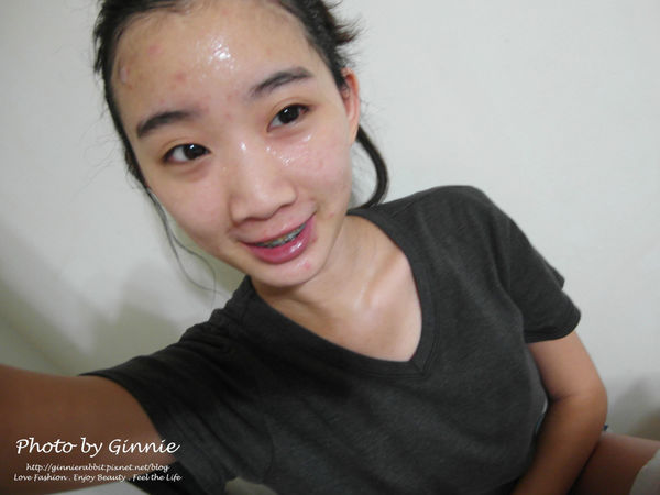 敷了20分鐘但是面膜的水還是多到像要滴到地板上一樣! (已經滴了)