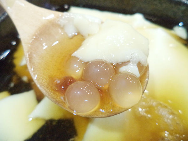 於是我選了芋圓+黑糖寒天和荔枝蛋