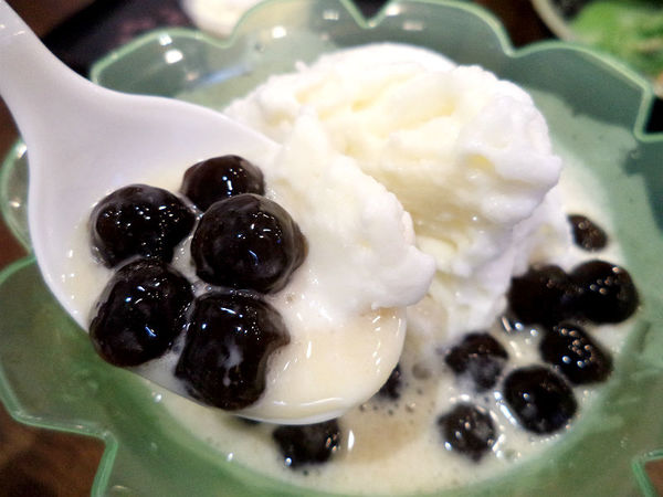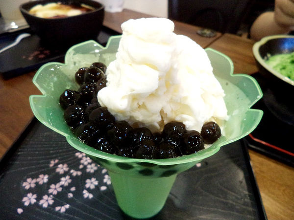 旁邊的抹茶珍珠QQ的很有彈性,另外他的抹茶冰淇淋除了本身的茶香以外,還多了一點點淡淡的奶香