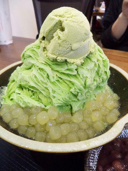 從底部的抹茶雪花、圓滾滾的抹茶珍珠到頂部的抹茶冰淇淋,三種風味一次滿足!!