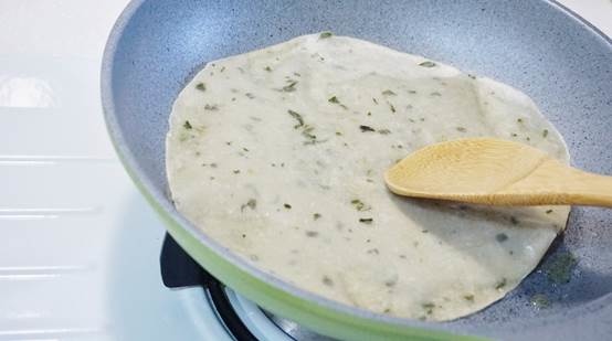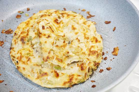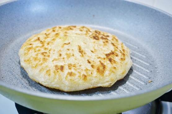 料理蔥抓餅時,最好選用不沾平底鍋。