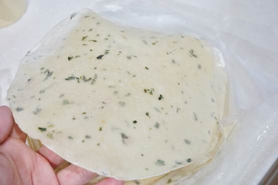 每一片蔥抓餅都用塑膠薄膜隔開,不會沾黏。