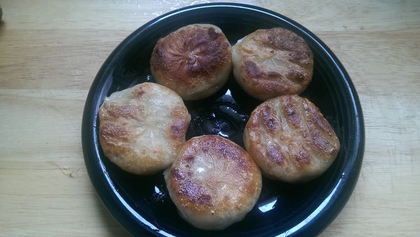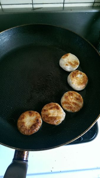 兩面煎到稍微有焦香斑點出現後,豬肉餡餅就可以先起鍋