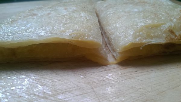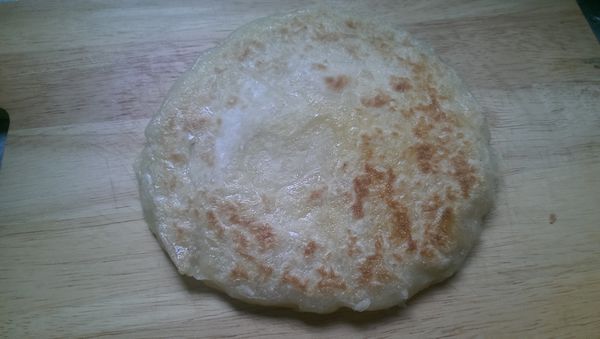 蛋餅皮含油量也不多,餅皮非常Q彈,淡淡的麵粉香