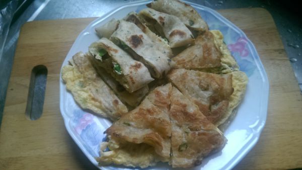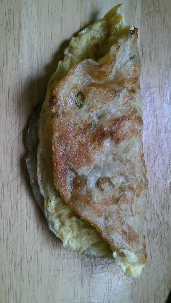 蔥味四溢,加上蛋香,酥脆餅皮配上軟嫩雞蛋,真是天生絕配