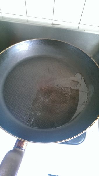 平底鍋熱油,同時還會煎其他食品,所以油量有多放一點,