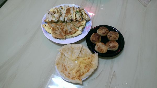 我家除了是原始人,還是恐龍,因此蔥抓餅配餡餅肯並不夠,最後還需要祭出蛋餅及甜點奶酥餅