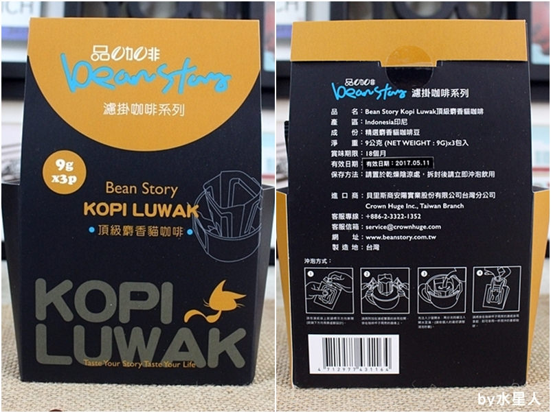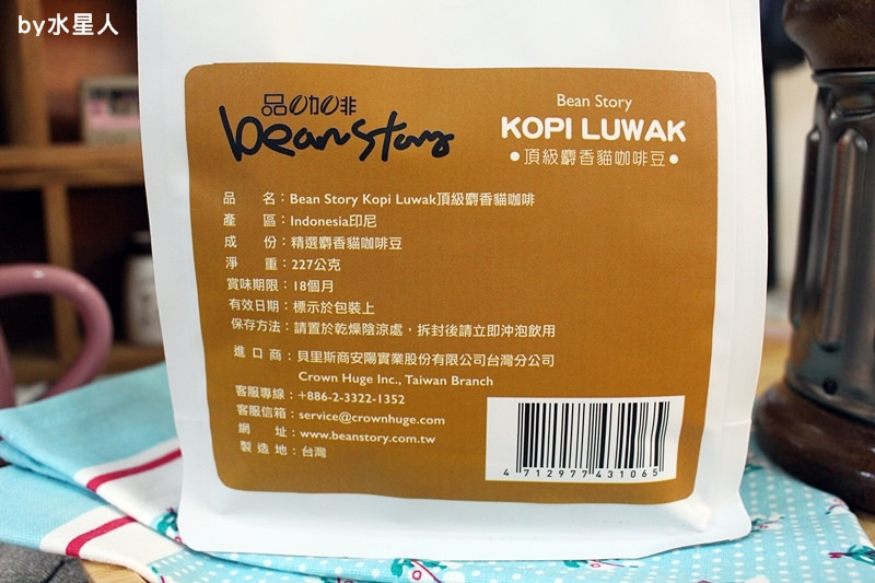 這款頂級麝香貓咖啡產區來自印尼,製造地在台灣,賞味期限18個月。